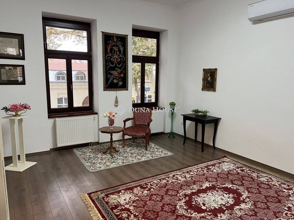 Eladó tágas, polgári lakás Pécs belvárosában, a Szabadság utcában – 104 m², erkéllyel, akár irodának, rendelőnek vagy szalonnak is ideális!Pécs frekventált részén, a Szabadság utcában kínálunk megvételre egy 104 m²-es, polgári stílusú, kiváló elrendezésű ingatlant. Az első emeleten található lakás tágas tereinek, nagy belmagasságának és jól tagolt alaprajzának köszönhetően nemcsak otthonnak, hanem irodának, ügyvédi irodának, rendelőnek, kozmetikai vagy egészségügyi szalonnak is tökéletes választás lehet.Az ingatlan elosztása: 3 nagy szoba, külön konyha-étkező, fürdőszoba, külön WC, valamint egy 6 m²-es erkély, amely az udvar felé néz. A lakás világos, reprezentatív megjelenésű, könnyen alakítható az új tulajdonos igényei szerint.Fűtése Viessmann gázkazánnal megoldott, az épület rendezett, a környék pedig könnyen megközelíthető, akár tömegközlekedéssel, akár autóval.További előny: az ingatlanhoz opcionálisan teremgarázs-hely is megvásárolható, ami ritkaság a belvárosban.Ha Ön egy jól megközelíthető, elegáns helyszínt keres vállalkozása számára, vagy értékálló belvárosi otthont, ez az ingatlan remek lehetőség!