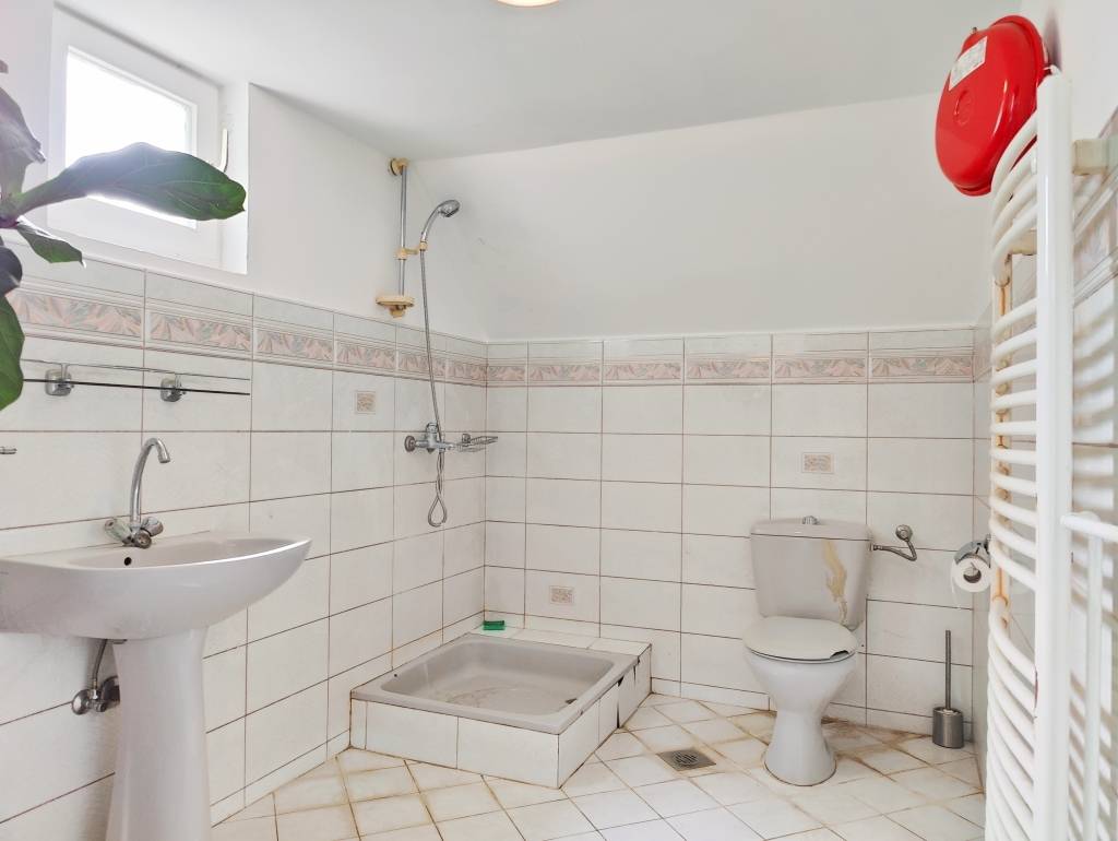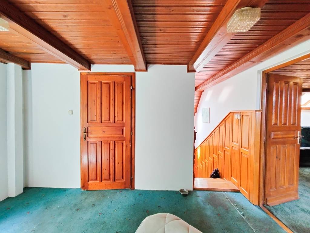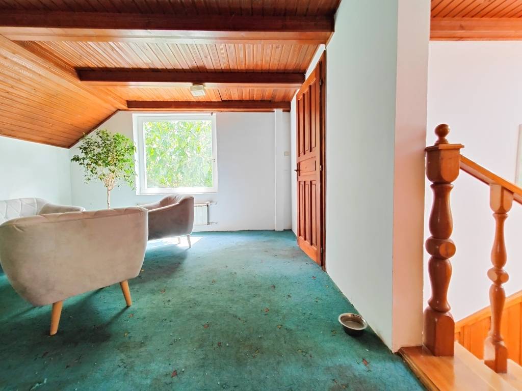 Emelet: előszoba, egy tágas hálószoba nagy belmagassággal és kandallóval, valamint egy külön fürdőszoba + WC.