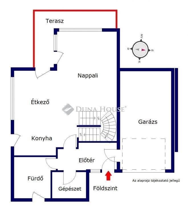A földszinten az amerikai konyhás nappalin (43 nm) és a kiszolgálóhelyiségeken kívül egy kényelmes, nagy mértű (22 nm) garázst és fürdőszobát is találunk. ( Igény esetén a garázs helyén egy földszinti, 4. hálószobát is kialakíthatunk, így akár kétgenerációssá is tehetjük otthonunkat.)