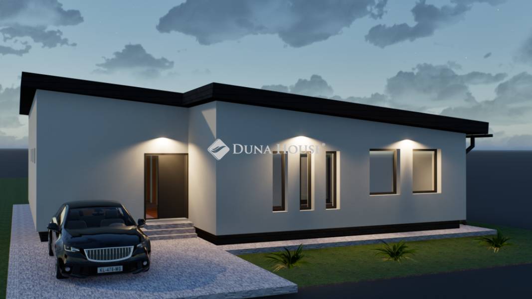 Tágas nappali, 4 külön nyíló szoba, ((amerikai konyha-nappali-étkező + 3 hálószoba), 2 gardrób, nagy előszoba, kertkapcsolatos terasz, letisztult modern építészeti megoldások, parkosított kert lehetőségével.