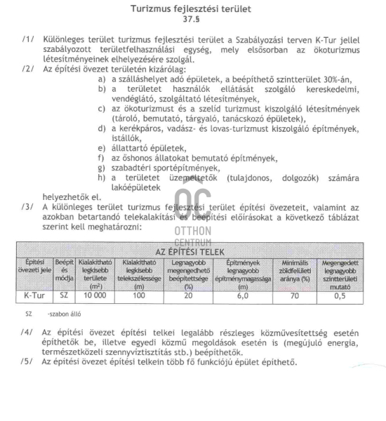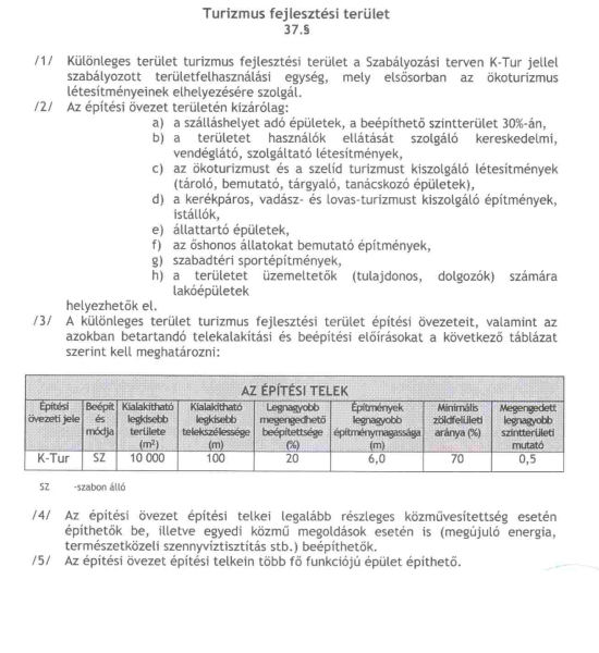A Rendezési Tervben Turizmus fejlesztési területként nyilvántartott.