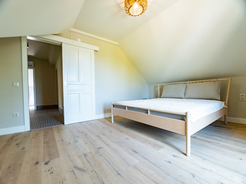 A belső terek kialakításánál a természetes anyagok és a prémium burkolatok dominálnak: a hajópadló lépésálló szigeteléssel készült, megfelelve a mai építési szabványoknak, a nappaliban és az étkezőben pedig stílusos spanyol cementlapok teszik különlegessé az enteriőrt.