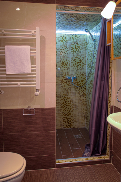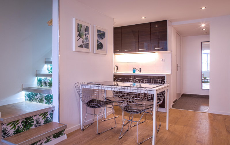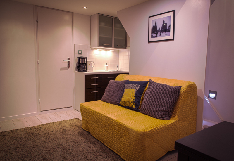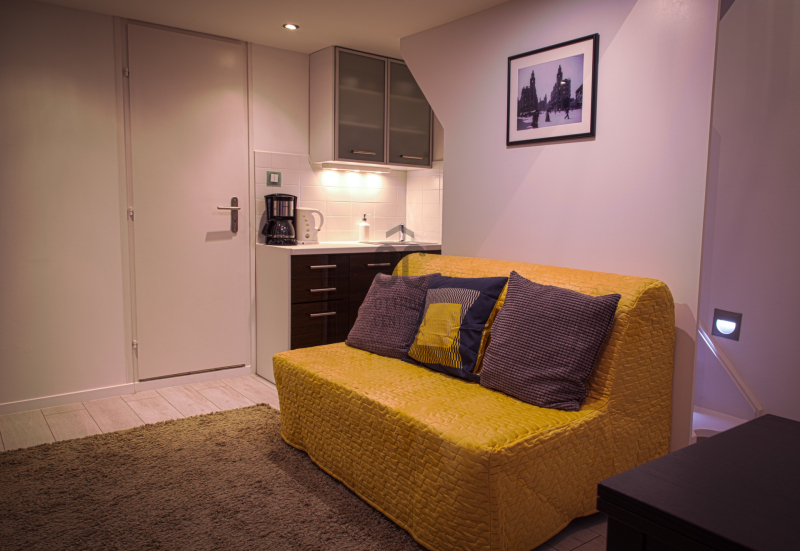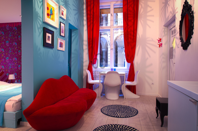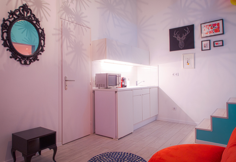 Minden apartmanhoz saját fürdőszoba és konyha tartozik. Kettőnek az ablakai a Mária utcára, kettőnek pedig az udvar felé néznek.
