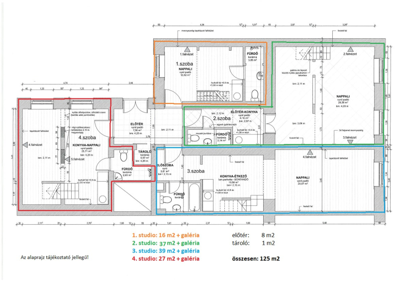 Jelenleg rövidtávú kiadással történik a hasznosítása, az apartmanok 39 m2 + galéria, 37 m2 + galéria, 27 m2 + galéria és 16 m2 + galéria nagyságúak.