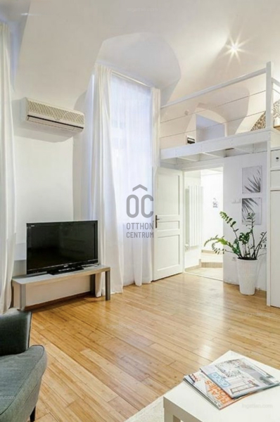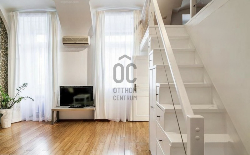 Budapest szívében, a Deák tértől mindössze pár perc sétára eladó ez a 45 m²-es (38 + 15 galériás), különleges hangulatú, magas belmagasságú lakás.