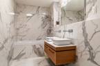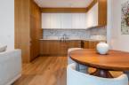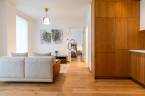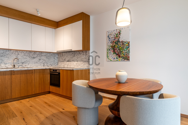 Az apró részletekben is tetten érhető a luxus: rejtett zsanéros ajtók dizájnos Olivari kilincsekkel, a különböző felületek textúráinak harmonikus összhangja, valamint az egyedi, asztalos által készített konyha. A lakásban rengeteg beépített szekrény található, így bőséges tárolási lehetőséget kínál.