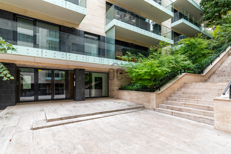 Az elegáns mészkőhomlokzat, az üvegkorlátos erkélyek és a letisztult építészeti megoldások harmonikusan illeszkednek a környék történelmi hangulatához. A belső tereket neves nemzetközi belsőépítészek tervezték, így a lakások egyszerre modernek, időtállók és stílusosak. A közös használatú terek mellett különleges értéket képvisel a gondosan megtervezett, magas minőségű japánkert és a hangulatos tetőkert, amelyek valódi nyugalomszigetet kínálnak a város közepén.