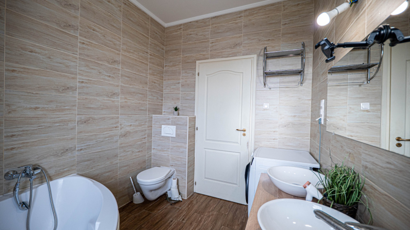 A szülői hálószobához külön tartozik egy gardrób helyiség és egy zuhanyzó-WC helyiség.