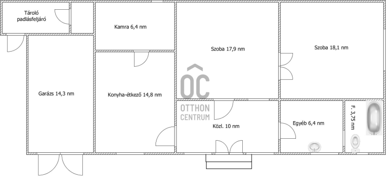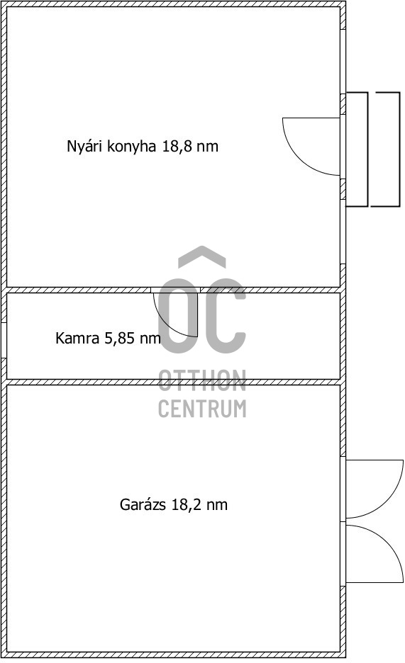 -a főépületben két szoba (opcionálisan 3 szoba), konyha, fürdő, közlekedő, kamra található ami így ~ 80 nm, valamint egy tágas garázs