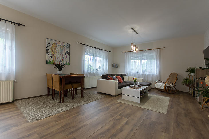 A gondozott kert barátságos hangulatot áraszt, tökéletes pihenésre vagy családi összejövetelekhez. Az ingatlan elhelyezkedése kiváló: nyugodt, zöld környezet, mégis könnyen megközelíthető, közel a természethez és a város kényelméhez. A közelben megáll a 71-es és 152-es busz amikkel rövid időn belül a kerület központjába juthatunk.