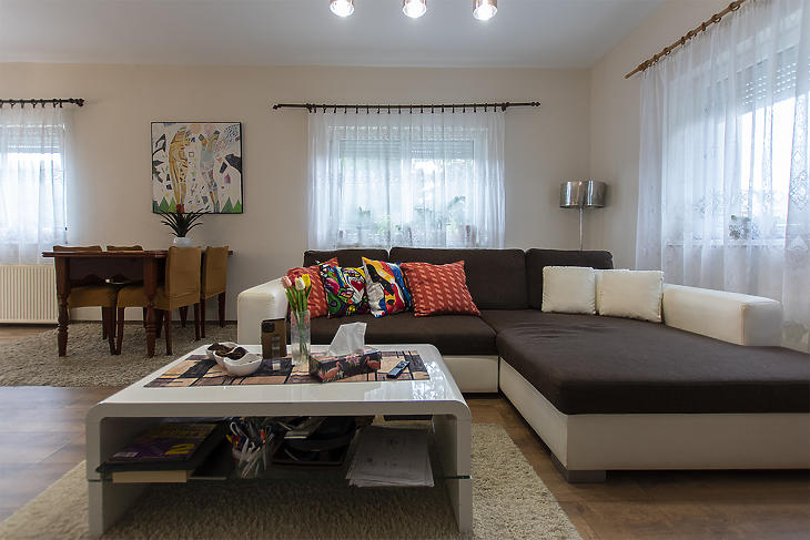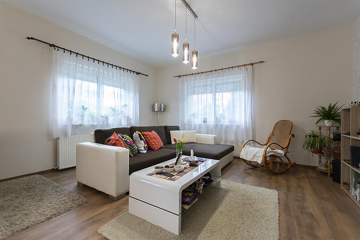 A belső terek praktikusak és otthonosak: 2 külön nyíló szoba és egy tágas, amerikai konyhás nappali biztosítja a kényelmet. A fűtést vadonatúj gázcirkó adja, a házhoz pedig egy 16 négyzetméteres, fedett terasz és két pince tartozik (36 és 15 négyzetméteres), így elegendő tároló hely áll rendelkezésre. Az épület betonfödémes, így a tetőtér opcionálisan beépíthető a későbbiekben.