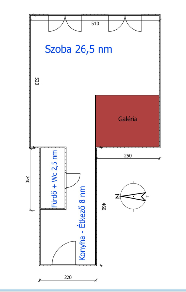 A lakás elrendezése könnyen 1,5 szobássá alakítható (pl. gipszkartonfallal vagy térelválasztóval).