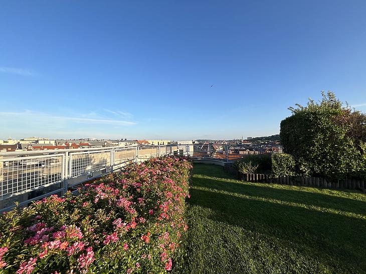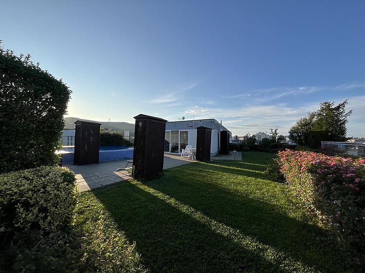 A társasház 2003-ban épült, liftes ház. A tetőterén egy panorámás wellness részleg medencével szolgálja az ott lakók nyugalmát.
