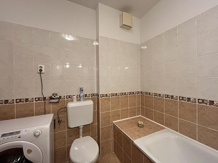 A fürdőszobában kád van, a mosógép ki-és beállása ebben a helyiségben került kialakításra.