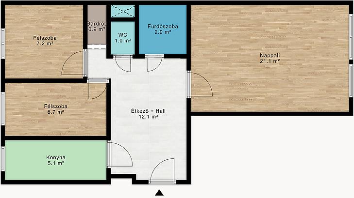 A 2023-as felújítás során minden helyiség új külsőt kapott: a konyhában, közlekedőben és gardróbban újszerű vinyl padló került lerakásra, a szobákban prémium minőségű laminált parketta, míg a vizes helyiségekben modern járólap. A falak mindenhol simítottak és frissen festettek, így letisztult, világos alapot adnak az új otthon kialakításához.