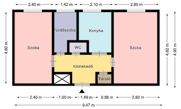 Az ingatlan elosztása kiváló, minden helyiség külön nyíló, konyhája nagy ablakos, a wc és a fürdőszoba szeparált.