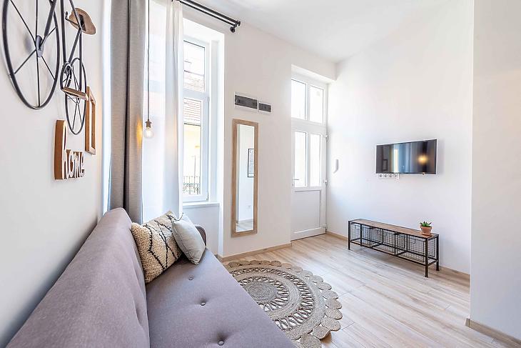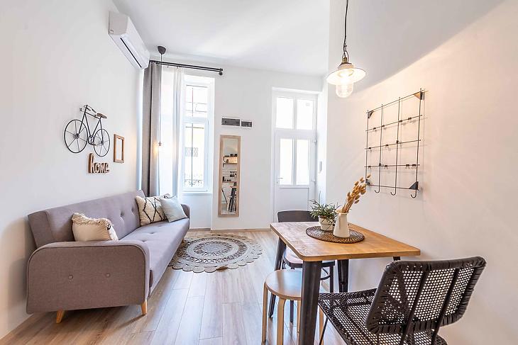 Eladó felújított, 2 szobás lakás a VI. kerületi Dessewffy utcában – szép társasházban, használati megosztással! Eladásra kínálunk egy 30 négyzetméteres, teljes körűen felújított, 2 szobás lakást Budapest VI. kerületének egyik közkedvelt utcájában, a Dessewffy utcában. Az ingatlan egy jó állapotú, rendezett társasházban található, csendes belső udvarra néző ablakokkal, így a nyugodt lakókörnyezet garantált. A lakás ízlésesen felújított, modern burkolatokkal, új konyhával és korszerű fürdőszobával rendelkezik. Elrendezése praktikus: egy nappali, egy külön nyíló hálószoba, valamint egy zuhanyzós fürdőszoba került kialakításra. Az ingatlan használati megosztással rendelkezik, amely rendezett jogi háttérrel, ügyvédi dokumentációval került kialakításra. A környék infrastruktúrája kiváló: pár perc sétára található az Oktogon, az Andrássy út, a Nyugati tér és a 4-6-os villamos vonala is, így a közlekedés kiváló. Éttermek, kávézók, üzletek, valamint kulturális programlehetőségek széles választéka érhető el a közelben. Ideális választás fiataloknak, egyetemistáknak vagy befektetés céljára, kiadásra is tökéletes lehetőség. Az adatok tájékoztató jellegű.