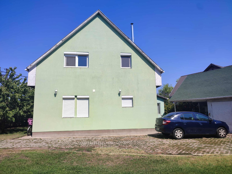 A téglaépítésű, zsindelytetős épület két szintje lehetőséget kínál két generáció kényelmes együttélésére. A külön bejáratú lakrészek biztosítják a magánszférát, ugyanakkor a közös kert és udvar összeköti a családot.