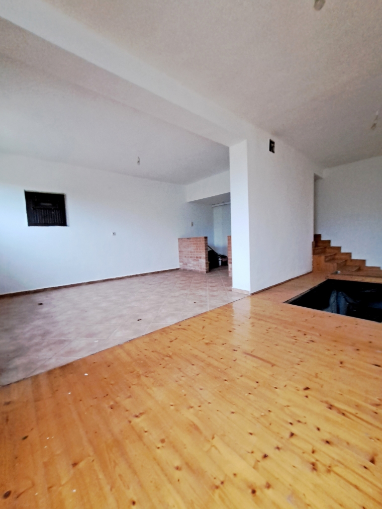 -a földszinten amerikai konyha-nappali, melynek közepén lépcsős lejárat a csodálatosan kifaragott, villanyvezetékelt 112m2-es pincébe