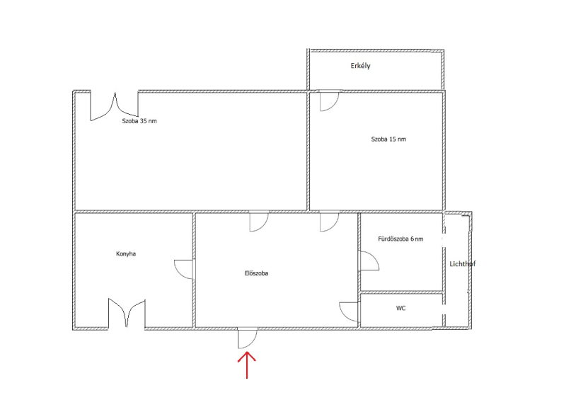 A 35 m²-es nappali mérete miatt könnyedén két külön szobává is alakítható, a konyha és az előtér falának megnyitásával pedig amerikai konyhás nappali is kialakítható.