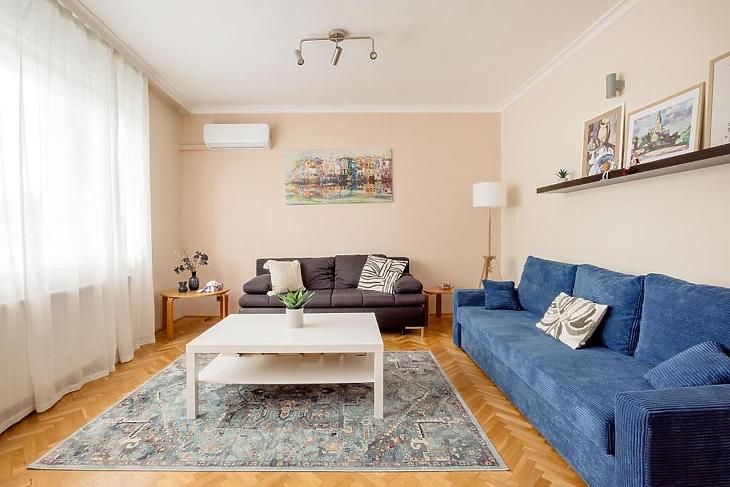 Teljes körűen felújított, minden részletében igényesen kivitelezett, bútorozott és gépesített, légkondicionált lakás – ide valóban csak egy bőrönddel kell érkezni.