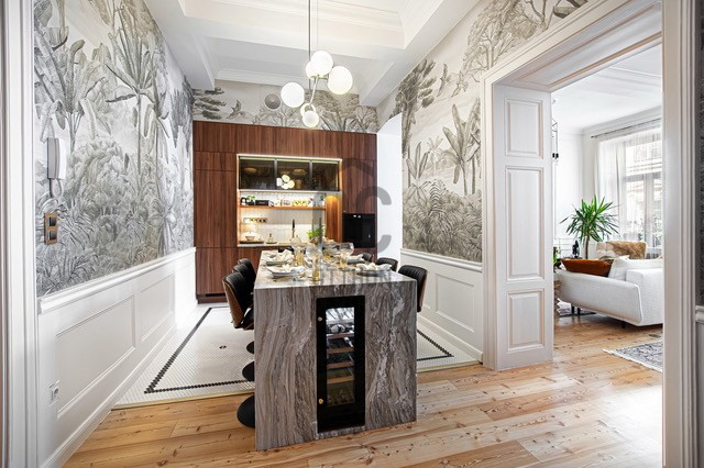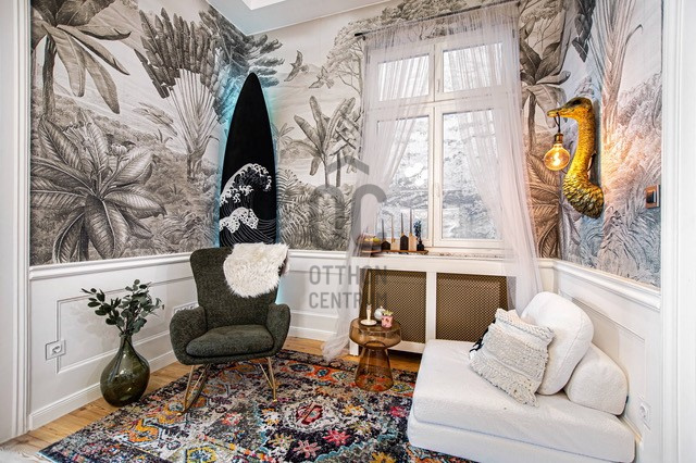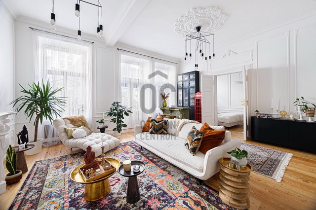 A LAKÁSBAN A KLASSZIKUS ÉS BOHÉM RÉSZLETEK SIMULNAK ÖSSZE ELEGÁNS EKLEKTIKÁBAN ÚJRAÉRTELMEZVE EZZEL A NAGYPOLGÁRI STÍLUST.
