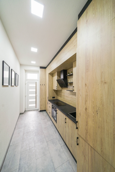 A teljesen felszerelt KONYHA sem hagy kívánnivalót maga után: Caddy sütő, Gorenje elszívó, indukciós főzőlap és BEÉPÍTETT HŰTŐ is helyet kapott.
