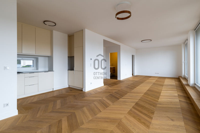 A lakás belső kialakítása modern és átgondolt. Tágas, 37 m²-es nappali-étkező, három külön nyíló hálószobás, és fürdőszobás elrendezéssel. A nappaliból és hálószobákból több irányba nyíló teraszok érhetők el – összesen, közel 60 m²-en élvezhető a városra nyíló páratlan kilátás.