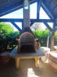 A műhely előtti rész térköves, a fatároló mellett egy hangulatos fedett szaletli került kialakításra.
