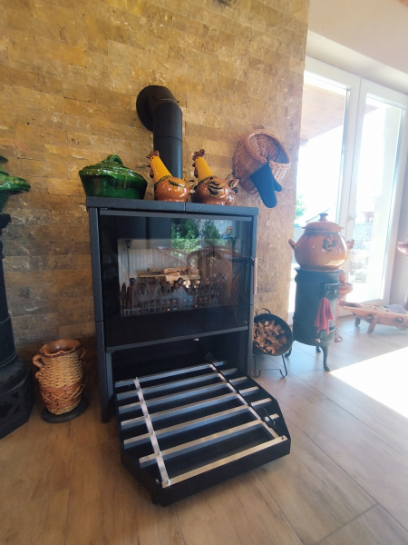 A hangulatos 6 kw teljesítményű, fa tüzelésű kandalló nemcsak a téli hónapokban biztosít melegséget, hanem különleges hangulatot is kölcsönöz a nappalinak.