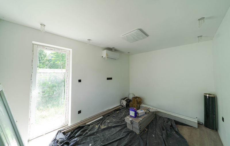 - Hőleadás padlófűtéssel történik, ennek előkészítése megtörtént