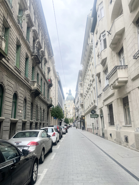 A társasház csendes és rendezett, az utcára kilépve egyik oldalon a Bazilika, másik oldalon az Operaház látványa tárul elénk!