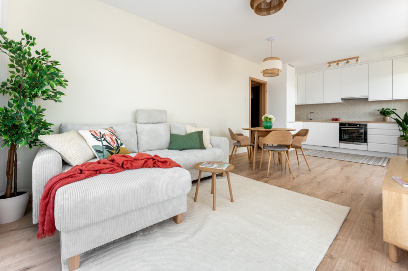 A lakás 4. emeleti saroklakás, 65 nm, 27 nm-es L alakú terasszal, nappalival, 2 hálóval, gardróbbal.