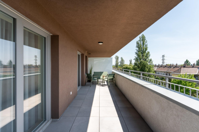 A XIII. kerület családias részén, a New Palace lakóparkban várja első lakóját ez a nagy teraszos, TELJESEN BERENDEZETT otthon.