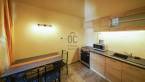 A világos, étkezős konyha a csendes belső udvarra néz, a zuhanyzós fürdőszoba/wc külön térben kapott helyet.