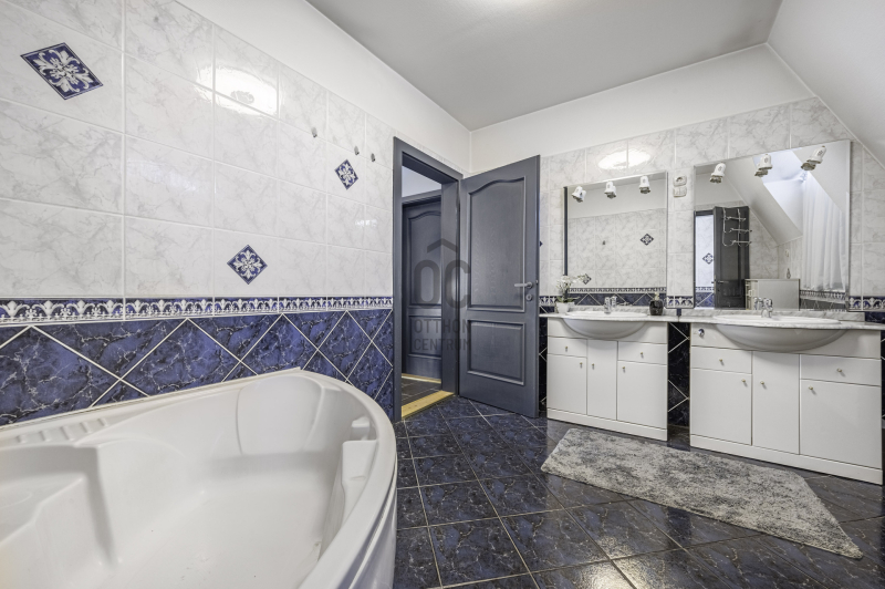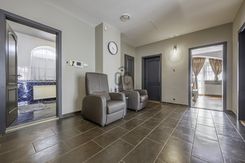 -felső szint: előtér, fürdőszoba wc, + wc külön,4 hálószoba, gardrób,(központi klíma+ manuális redőny)