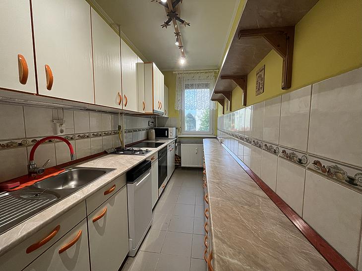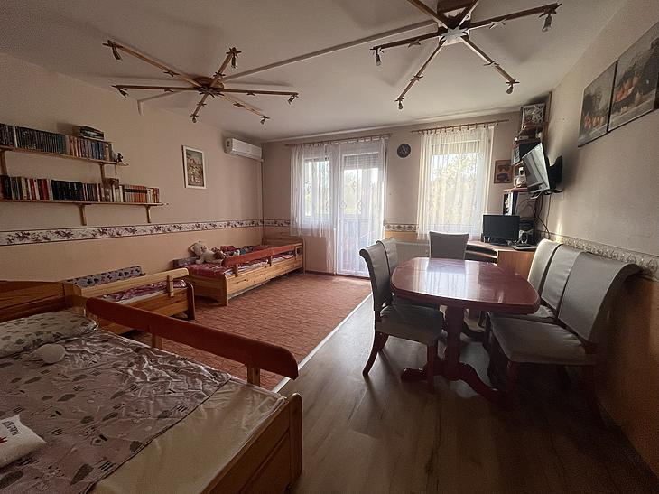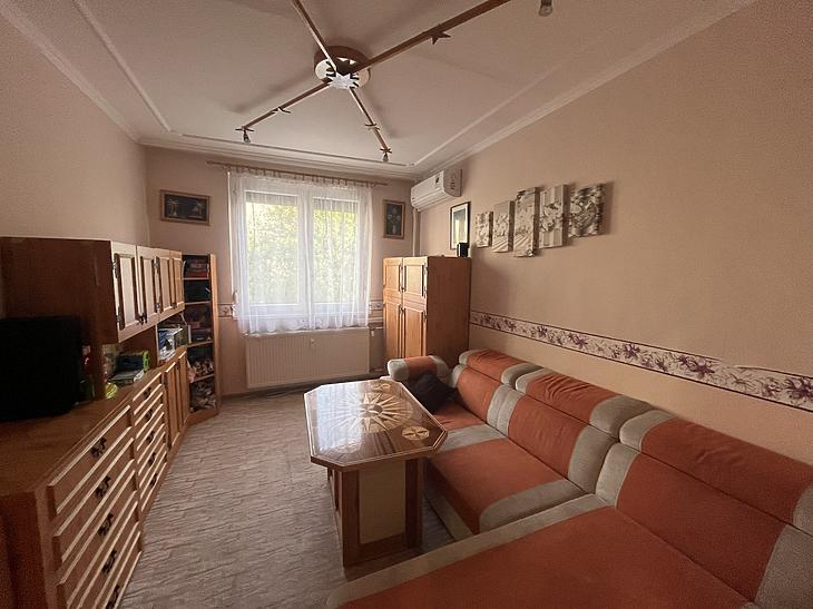 A lakás egy 4 emeletes, panelprogramos ház 3. emeletén található, zöld környezetben, mégis közel a bevásárlási lehetőségekhez és a közlekedéshez.