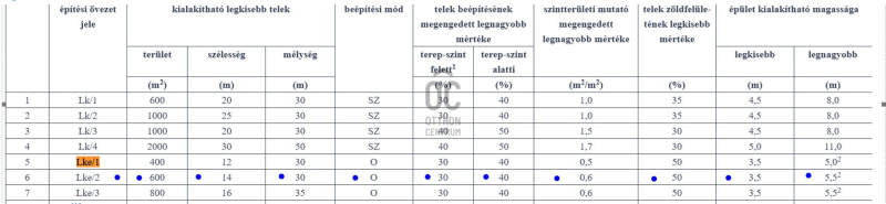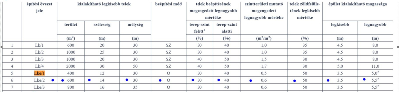 Az Lke-2 övezeti besorolás az alábbi beépítési lehetőségeket biztosítja: