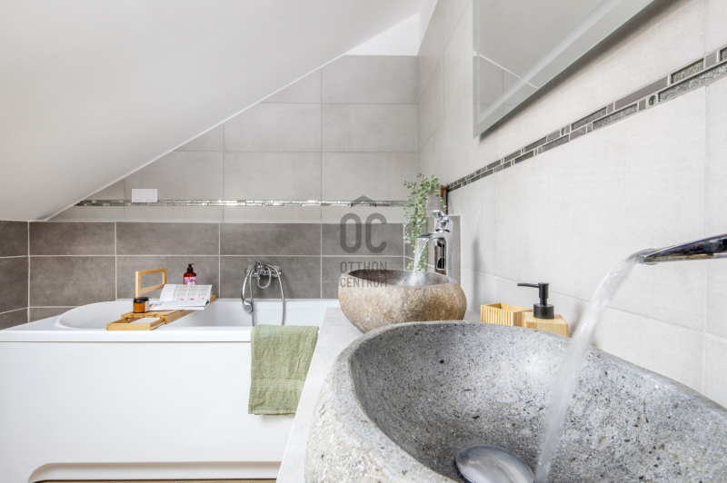 Az emeleten fűrdőkádas dupla mosdószekrény kényelmes a mindennapokban. Hangulata fantasztikus....