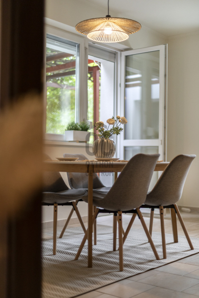 Igényesen felújított, letisztult és szépen berendezett belső terekkel..