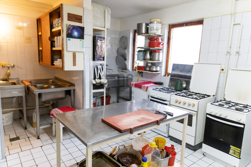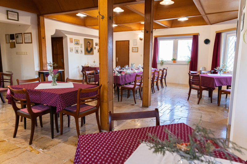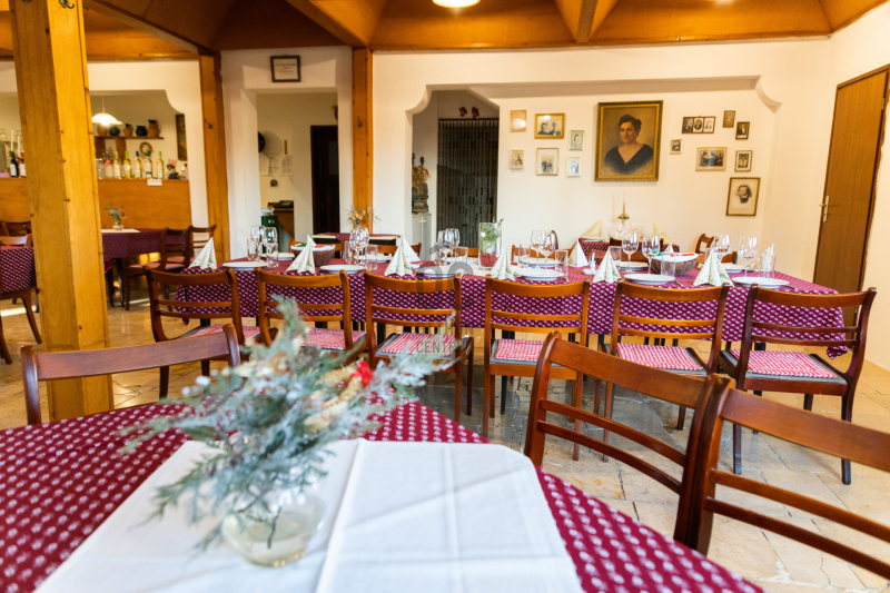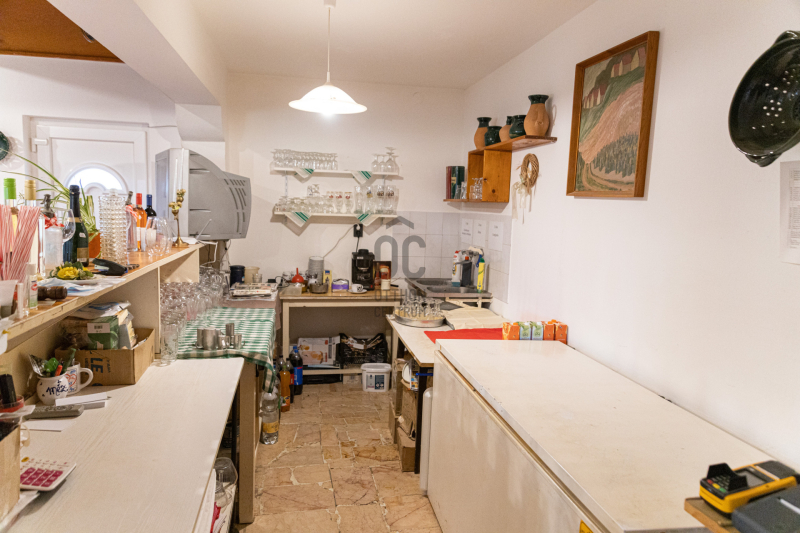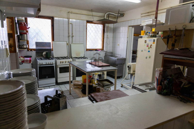 -Földszinten: max. 60 fő befogadására alkalmas étterem, bárpult, felszerelt konyha (50 adagos), előkészítők, raktárak, személyzeti öltözők, vendégmosdók.