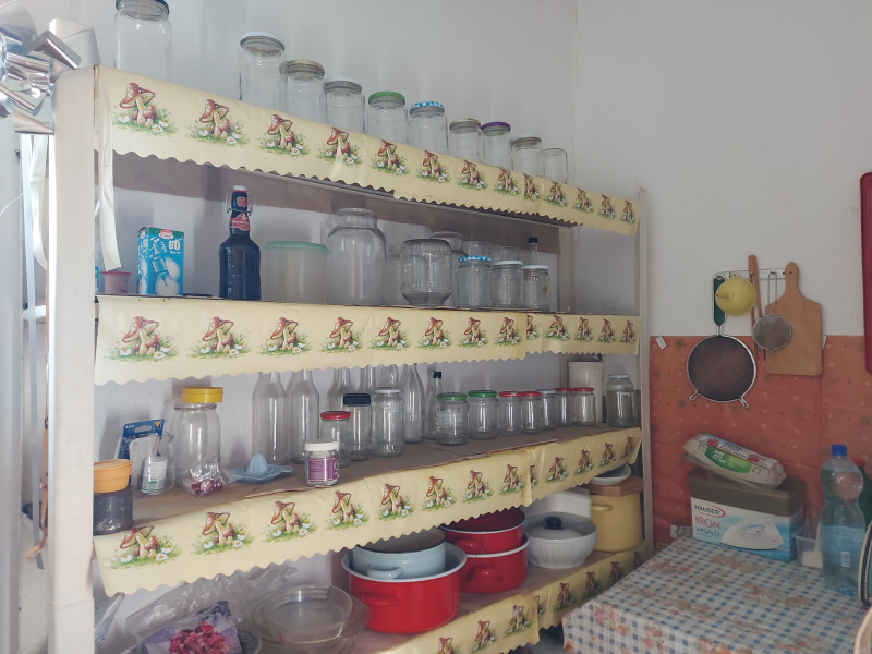 Kertben szépen termő diófa, meggyfa, cseresznyefa, körtefa találhatóak.
