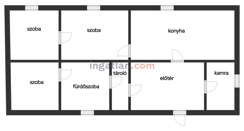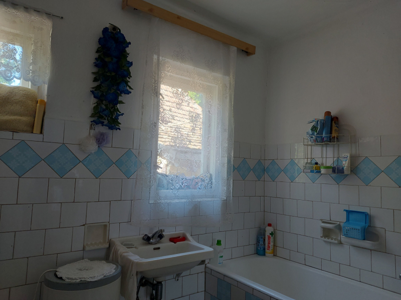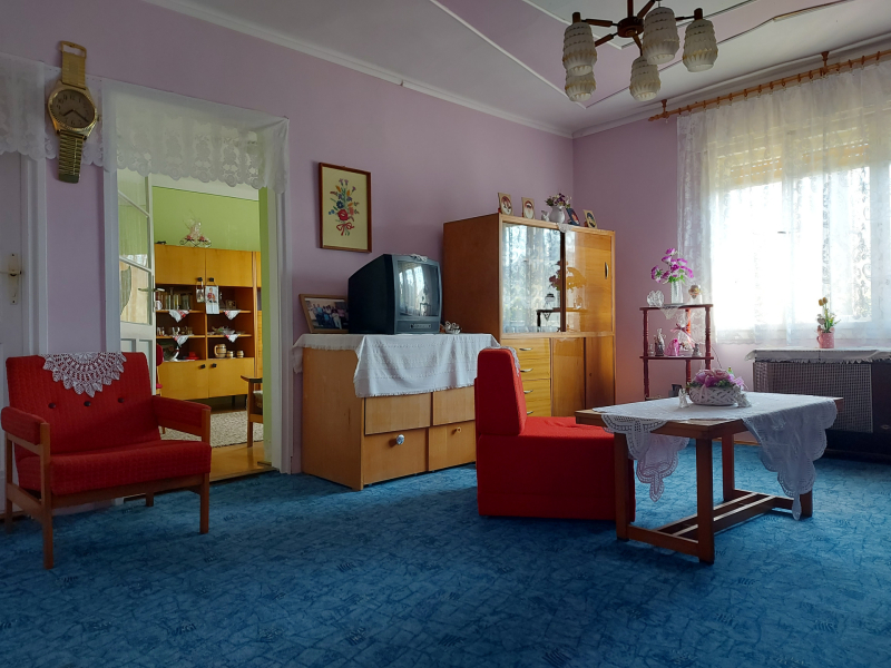 Az ingatlanban található a három szoba mellett egy előszoba, kamra, konyha, egy fürdőszoba és egy kis tároló amiben megtalálható a padlás feljáró is.