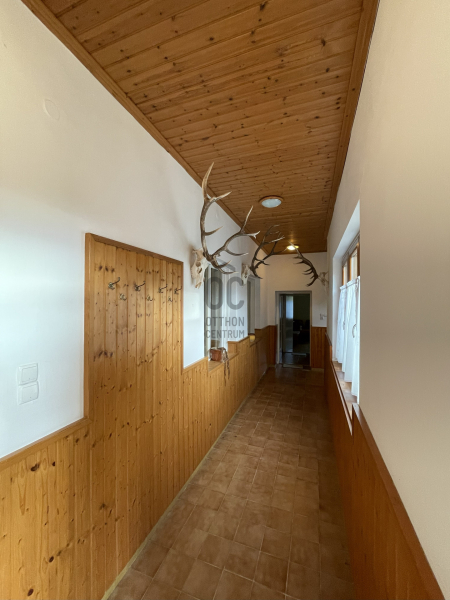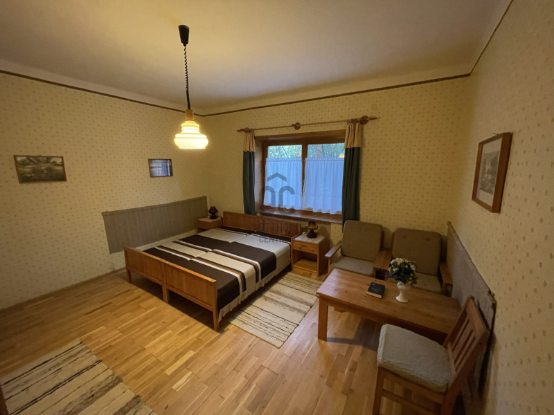 Ebben a környezetben vált eladóvá ez az apartmanház, mely kisebb átalakítása, modernizálása után kiválóan hasznosítható, kiadható. A terület hatalmas és gyönyörű környezetben van, távol a város zajától. Három szoba, mindhárom szobához külön fürdőszoba,egy nagy közösségi tér, előtér, konyha alkotja. Fűtése cserépkályhával megoldott. Nyílászárói jó állapotú fa szerkezetűek. A szobák, közösségi terek burkolata, külső fal, tető, megkímélt állapotúak.