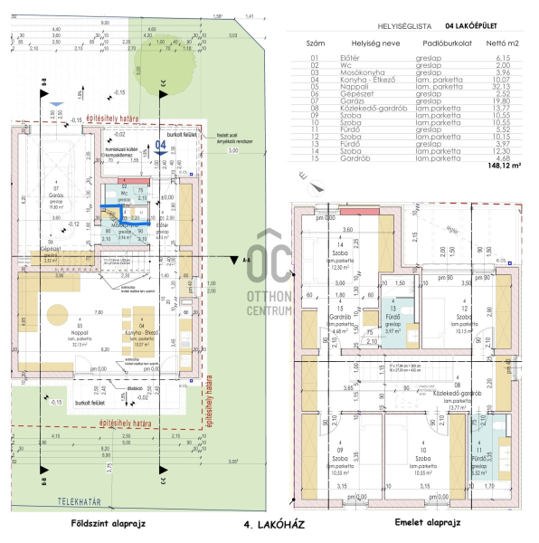 4. lakóház Br. 155 nm, nappali + 4 hálós: