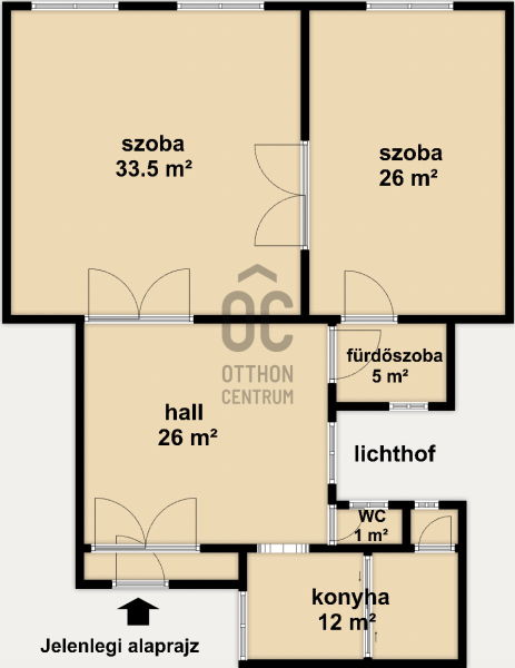 -kettő hálószoba, nagy hall, külön wc, fürdőszoba, és nagy étkezős konyha