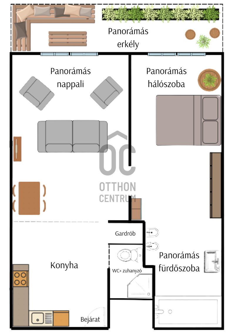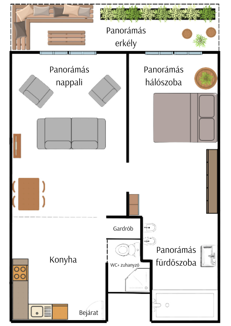Alapterület: 51 m² + 12 m² panorámás erkély