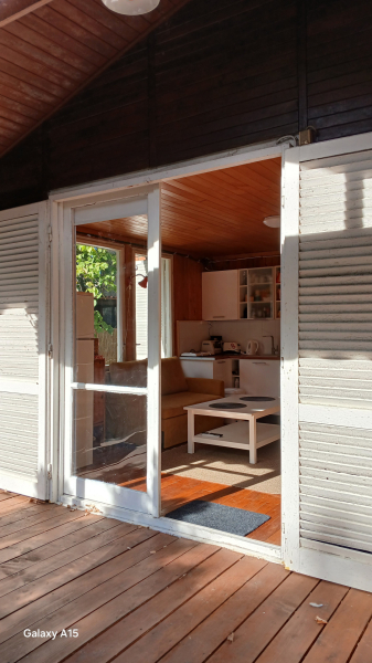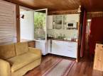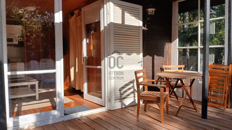 A hangulatos faház nagy teraszán keresztül juthatunk a nappali/konyha helységbe ahonnan az egyik kis hálószoba nyilik,