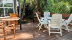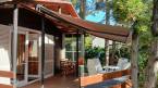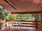 Mindezt családja, barátai körében de akár egyedül is, ahogy éppen jól esik. A nagy részben fedett terasz egy napellenzővel van kiegészítve.