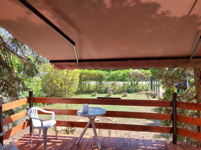 A 360 m2-es telek -ami a Balaton nyári hangulatát idézi- kellemes árnyékot és hangulatot adva biztositja a nyaralást és pihenést.